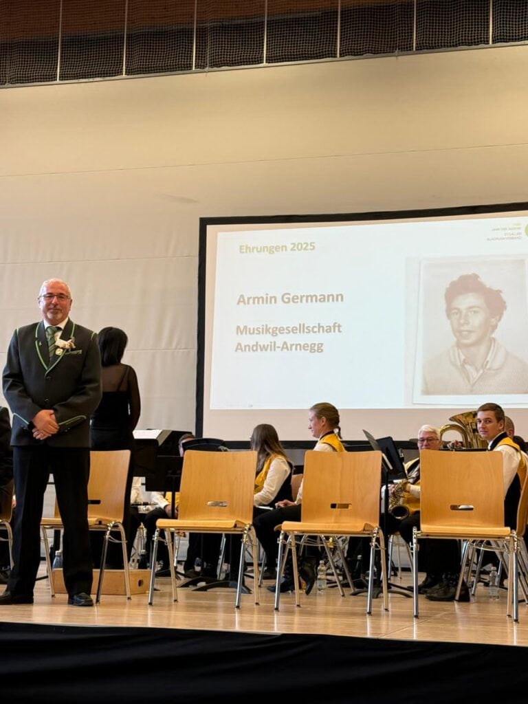 An der diesjährigen Kantonalen DV des SGBV in Sargans wurden Armin Germann und Ehrenmitglied Markus Ledergerber für 50 Jahre Aktivmitgliedschaft im Musikverein zu Kantonalen Jubilaren ernannt.